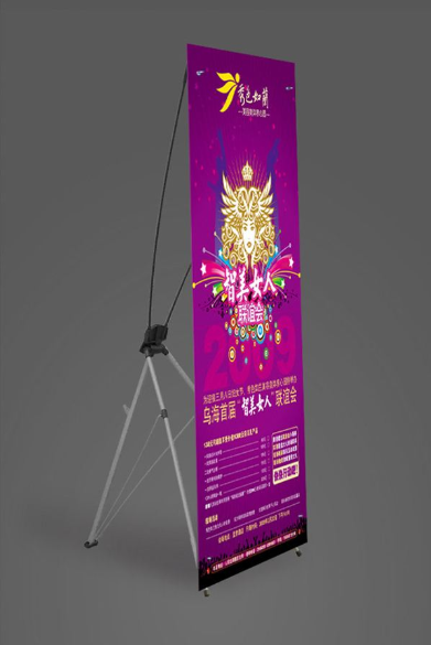 X展架是一种用作广告宣传的、背部具有X型支架的展览展示用品。X展架-终端宣传促销生动化的利器,展架又名产品展示架、促销架、便携式展具和资料架等。X展架是根据产品的特点,设计与之匹配的产品促销展架,再加上具有创意的LOGO标牌,使产品醒目的展现今的公众面前,从而加大对产品的宣传广告作用。